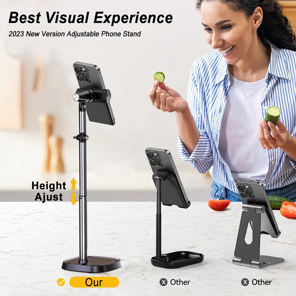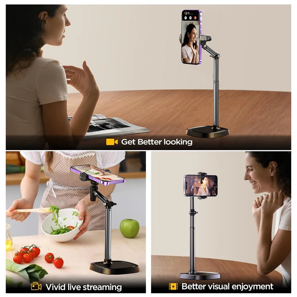 Height Adjustable Phone Holder for Live Broadcast – Portable Folding Multi-Angle Adjustable Stand for Cell Phones