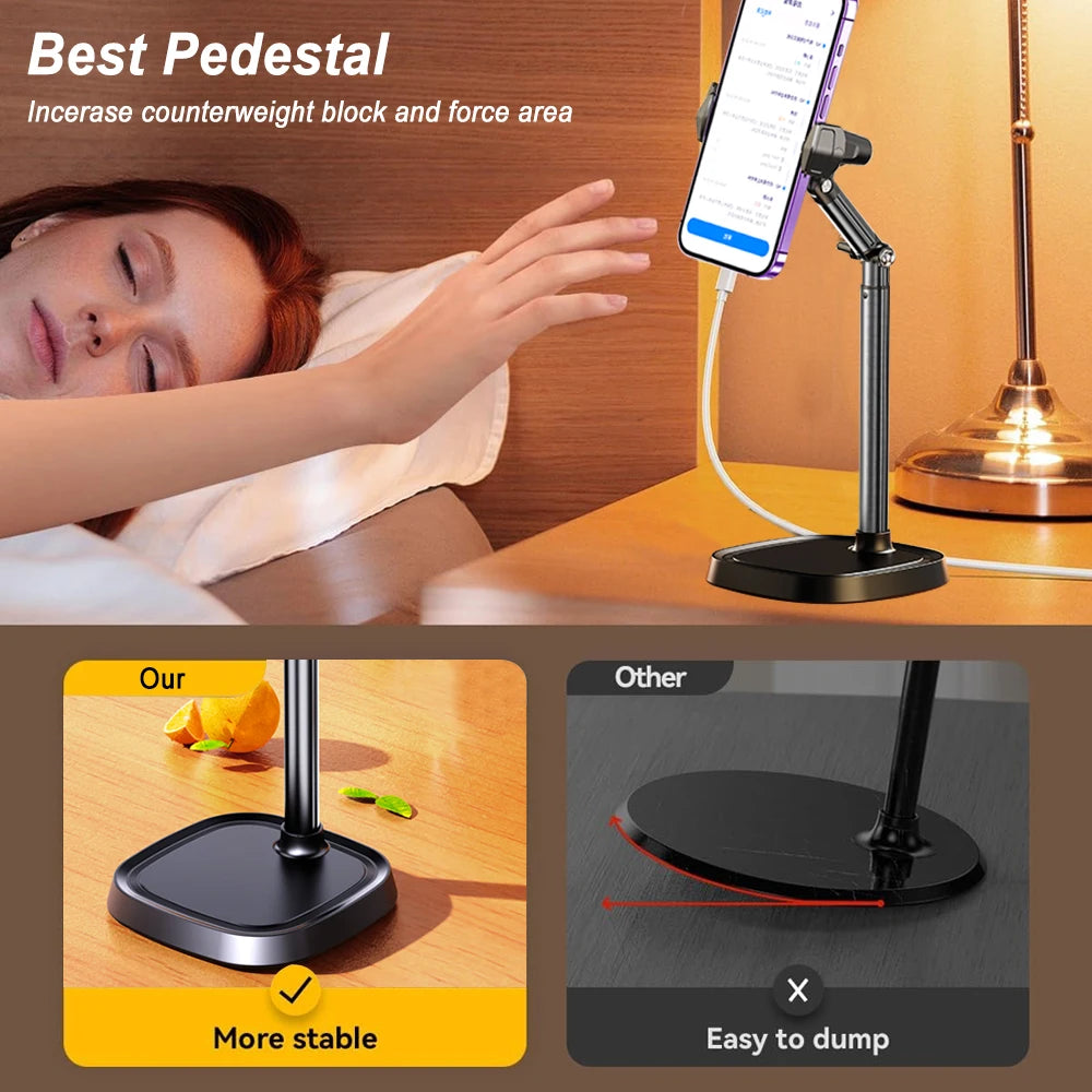 The stand supports a 180° flip and 360° rotation, allowing you to find the most comfortable angle for watching videos, reading, studying, gaming, video calls, or meetings. Ideal for vloggers who need perfect phone angles during live broadcasts. -