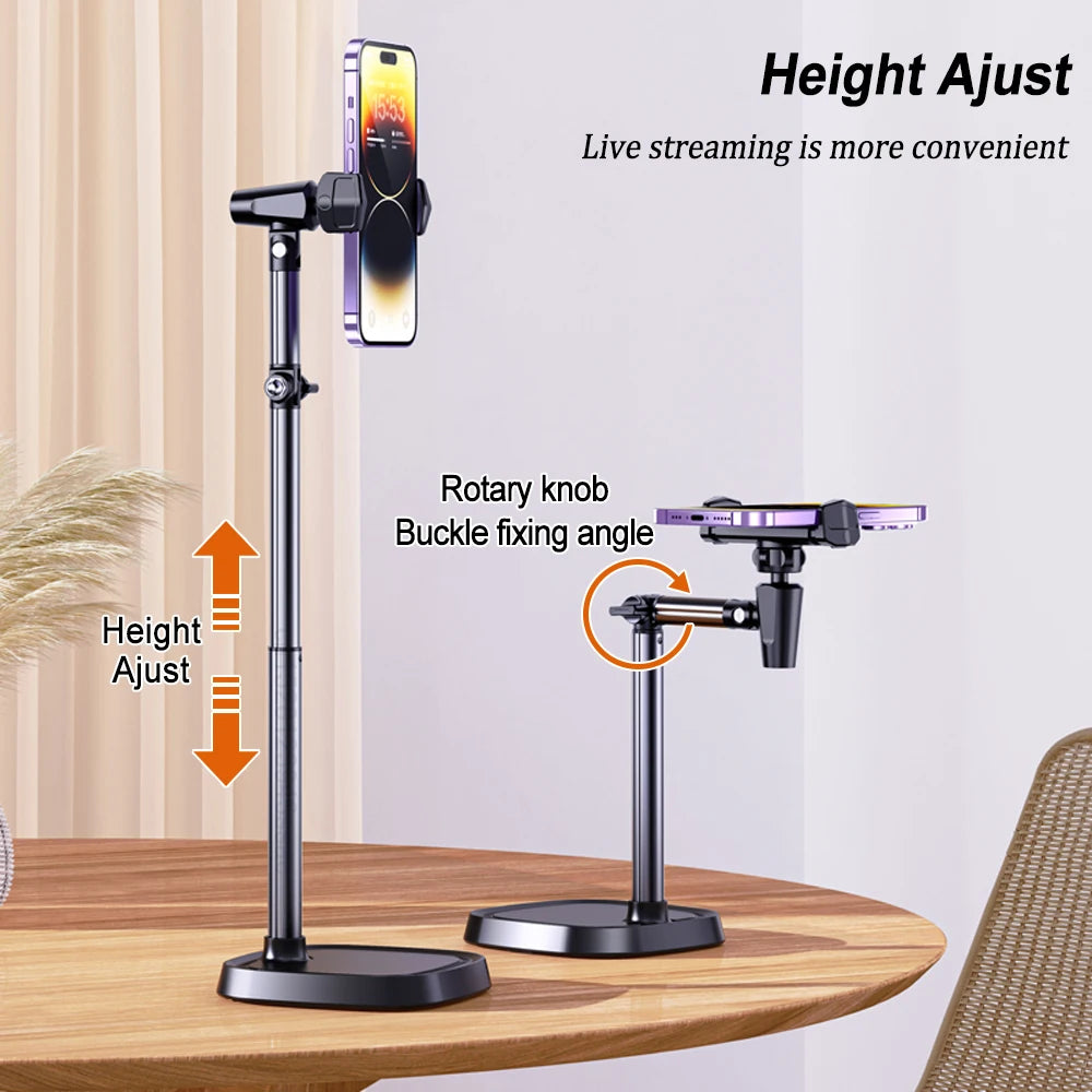 Height Adjustable Phone Holder for Live Broadcast – Portable Folding Multi-Angle Adjustable Stand for Cell Phone