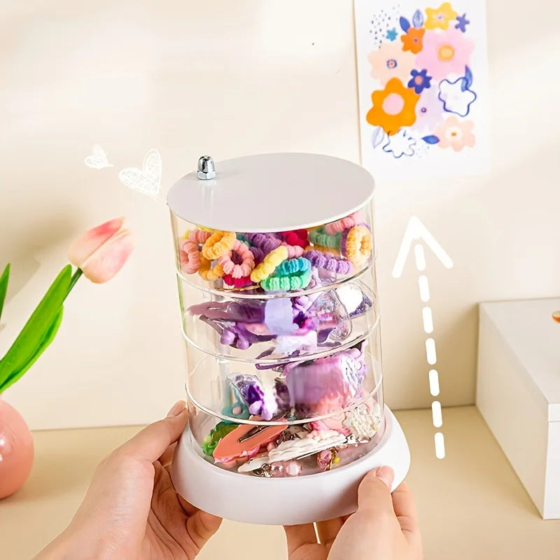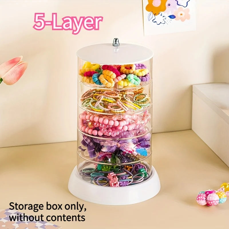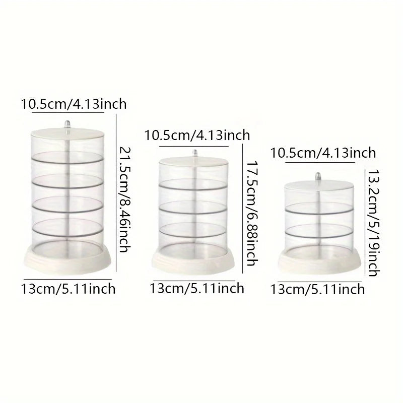 Features multiple rotating layers with independent open/close access, allowing you to store and retrieve items with ease. Ideal for makeup, stationery, jewelry, and more.