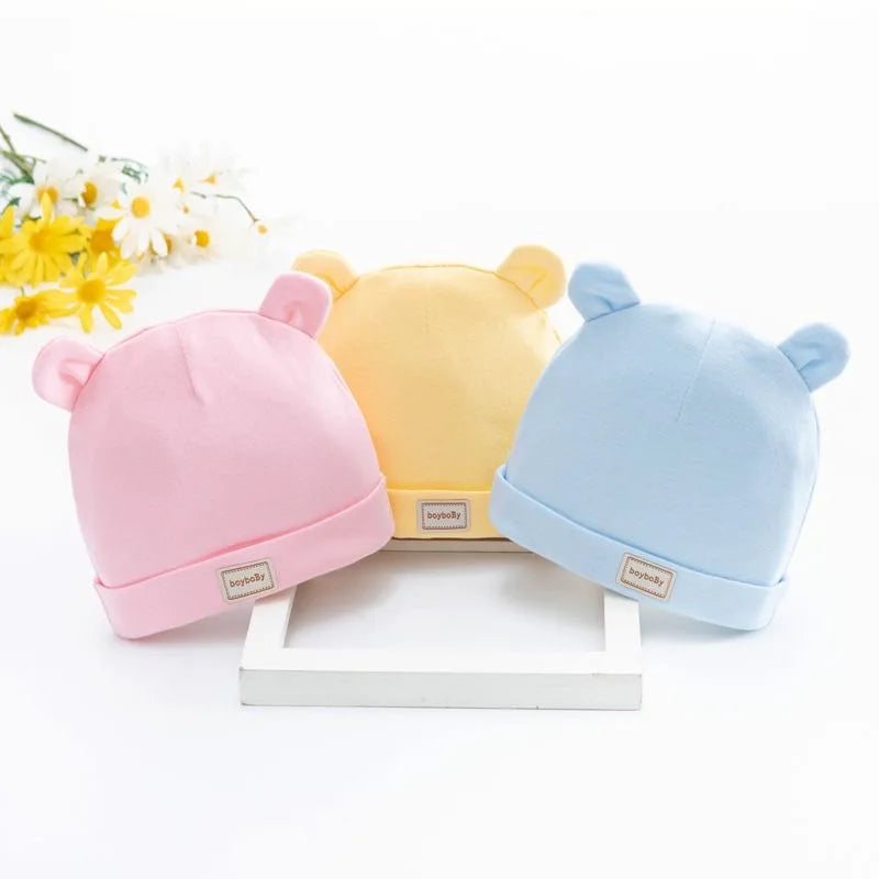Soft Cotton Newborn Baby Hat – Solid Color Breathable Cap with Bunny Ears for Boys & Girls, Sweat-Absorbent and Comfortable