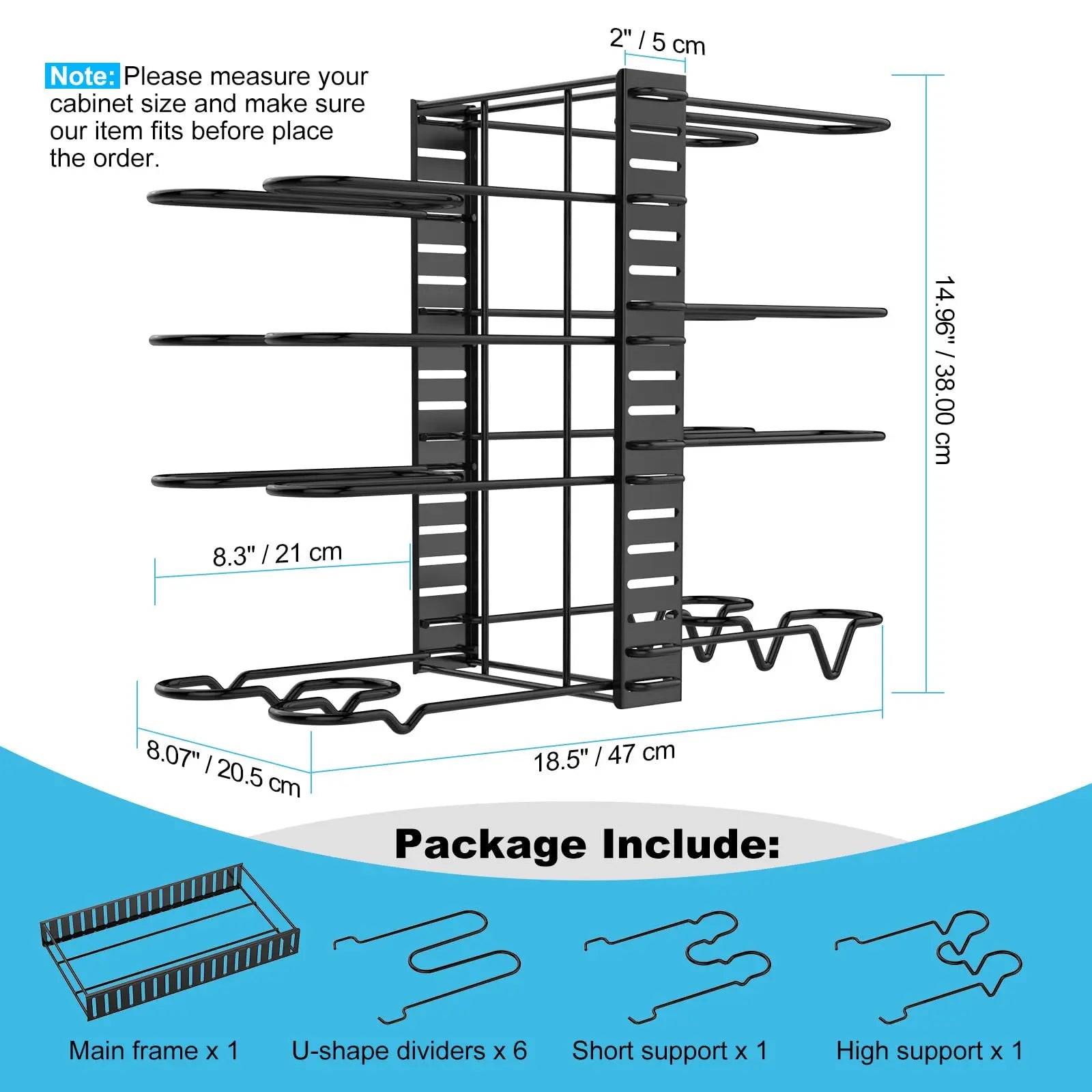 Upgrade your kitchen with this newly improved cookware organizer, designed for flexibility, durability, and efficient space-saving. Say goodbye to clutter and hello to a well-organized kitchen.