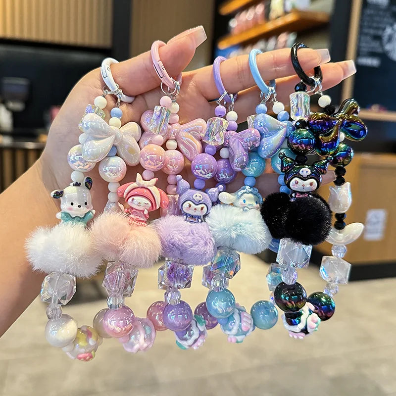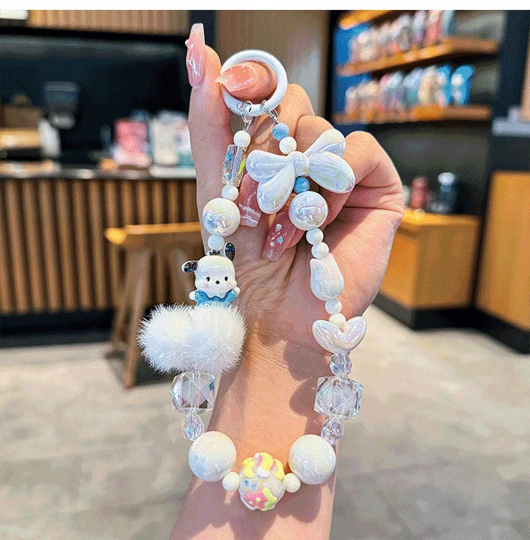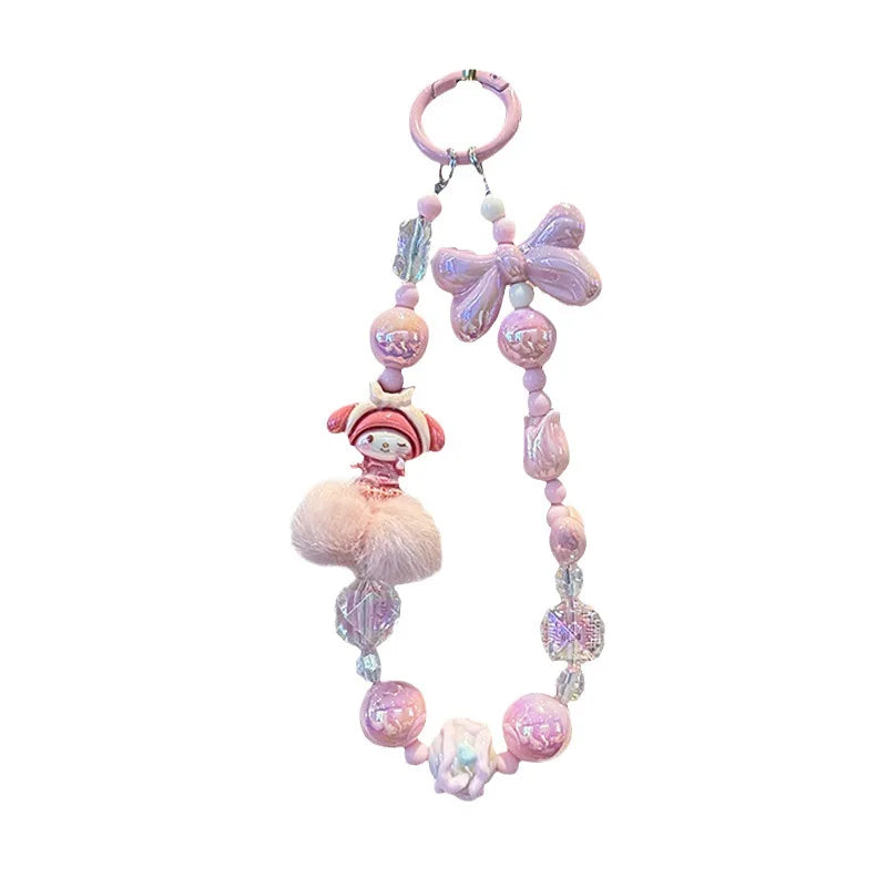 Sanrio Melody, Hello Kitty, Kuromi & Cinnamoroll Beaded Mobile Phone Case Chain — Hand-Drawn Camera Hanging Decoration