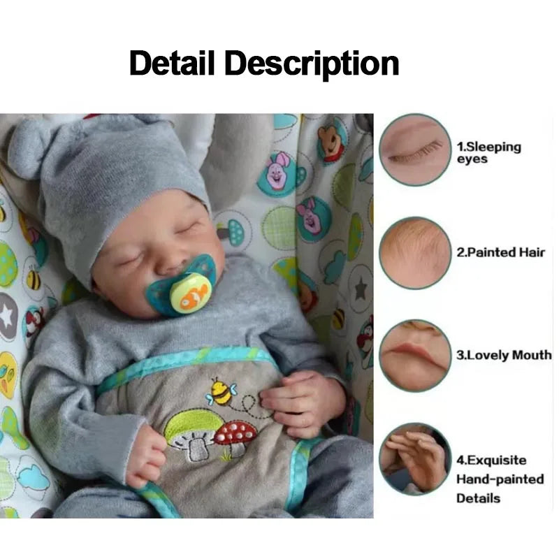 Realistic Size & Touch: Measures approximately 17–18 inches (43–46 cm) with a soft and gentle vinyl body that mimics the feel of a real baby.