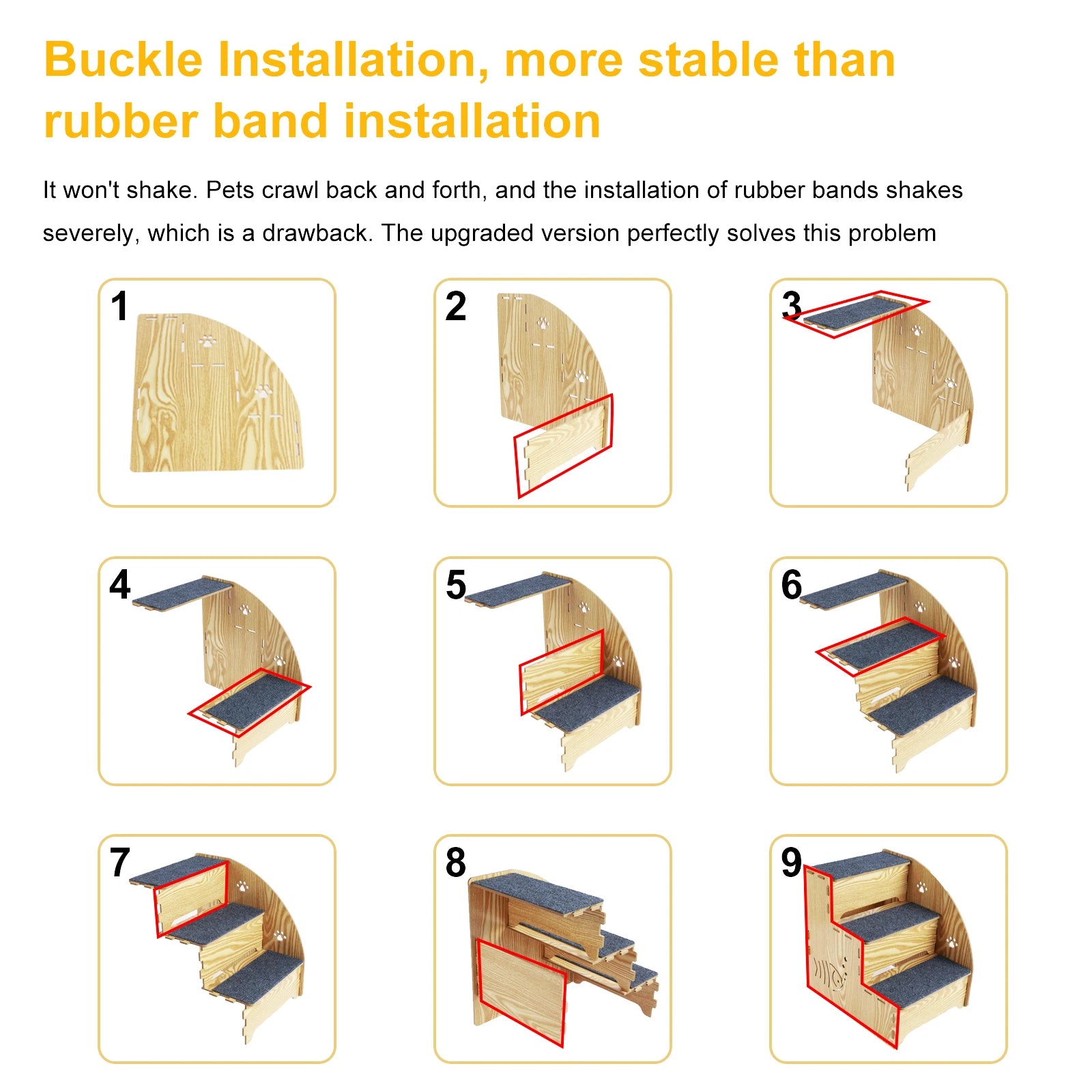 ✅ Pet-Friendly Design – Crafted with a sturdy wooden triangular structure, these stairs offer stability and support while your pet climbs. Training tip: use your pet’s favorite treat to guide them during the first week of use!