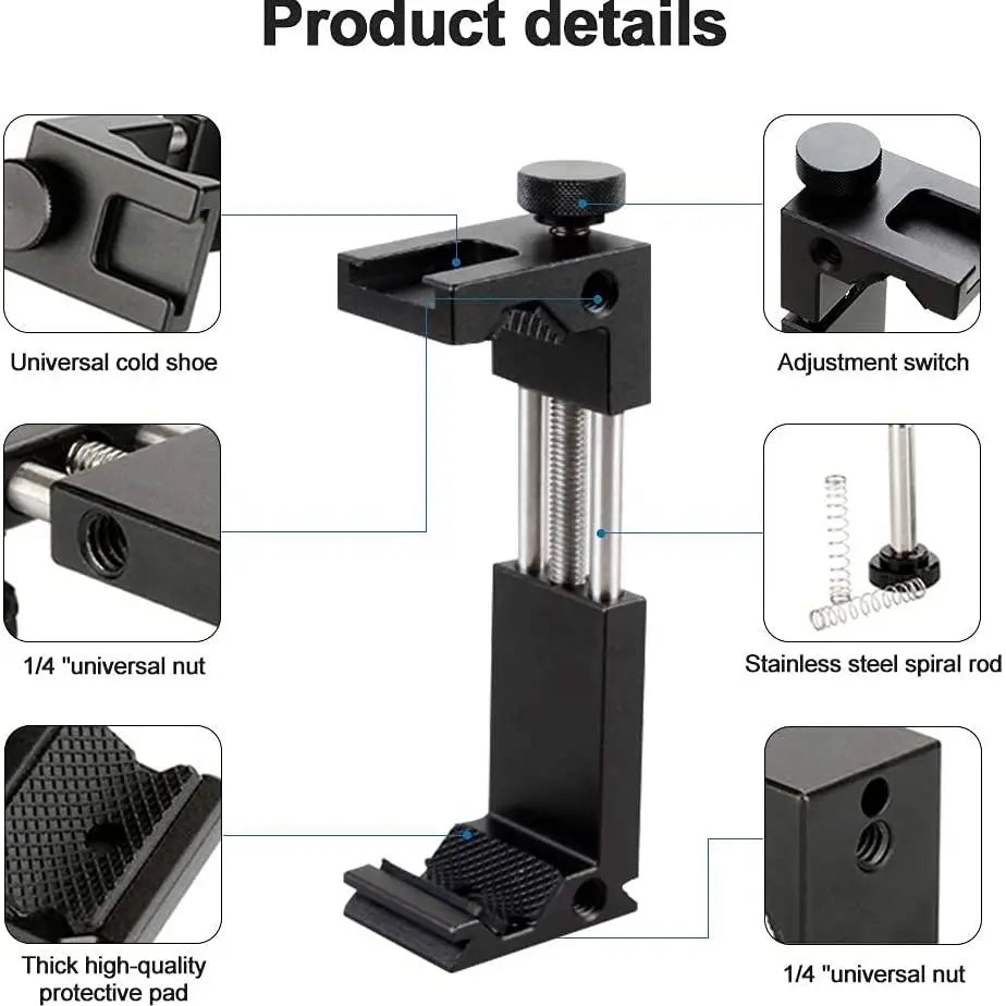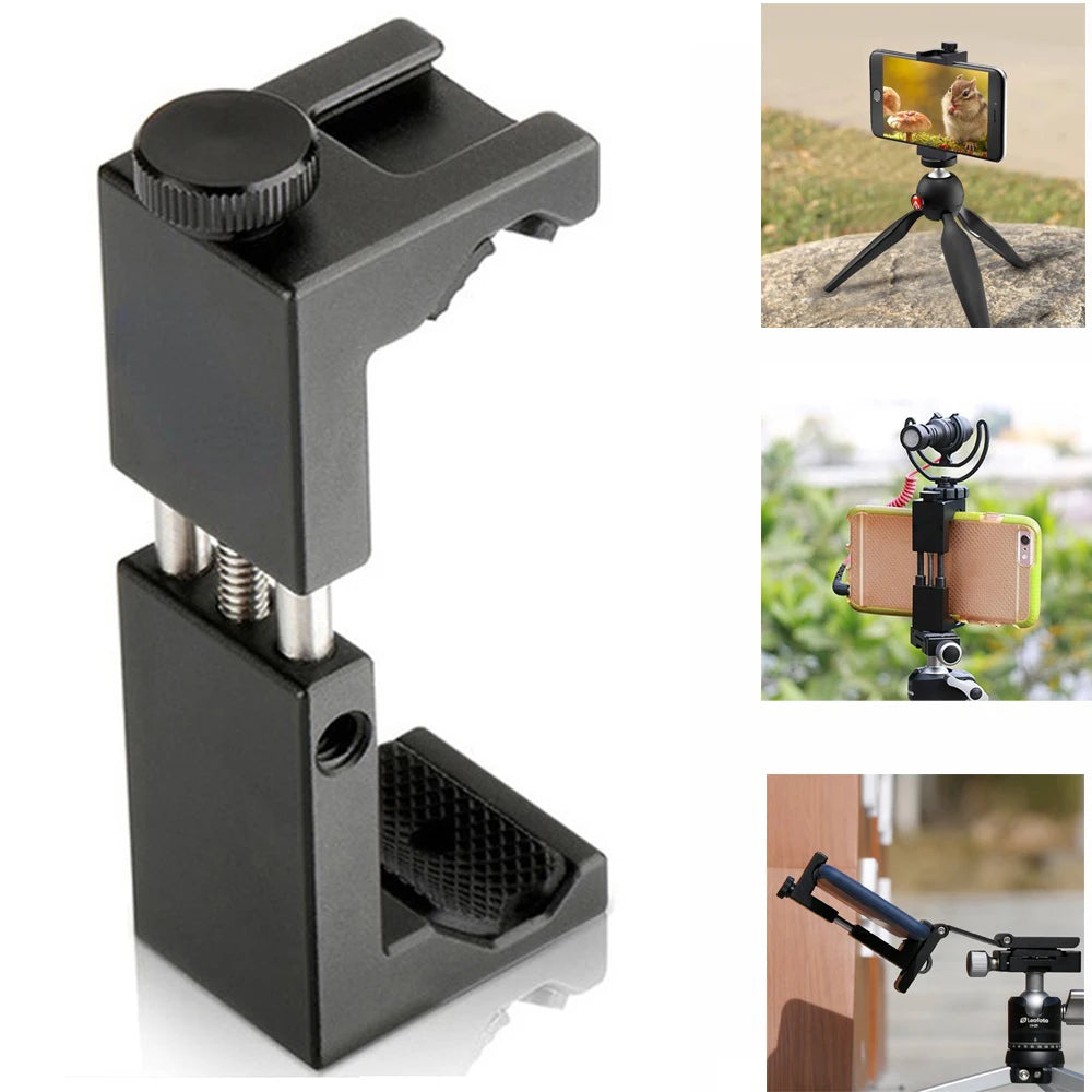 Universal Phone Holder Clamp Smartphone Clip Mount Bracket, Aluminum Alloy Phone Tripod Adapter with Cold Shoe Mount